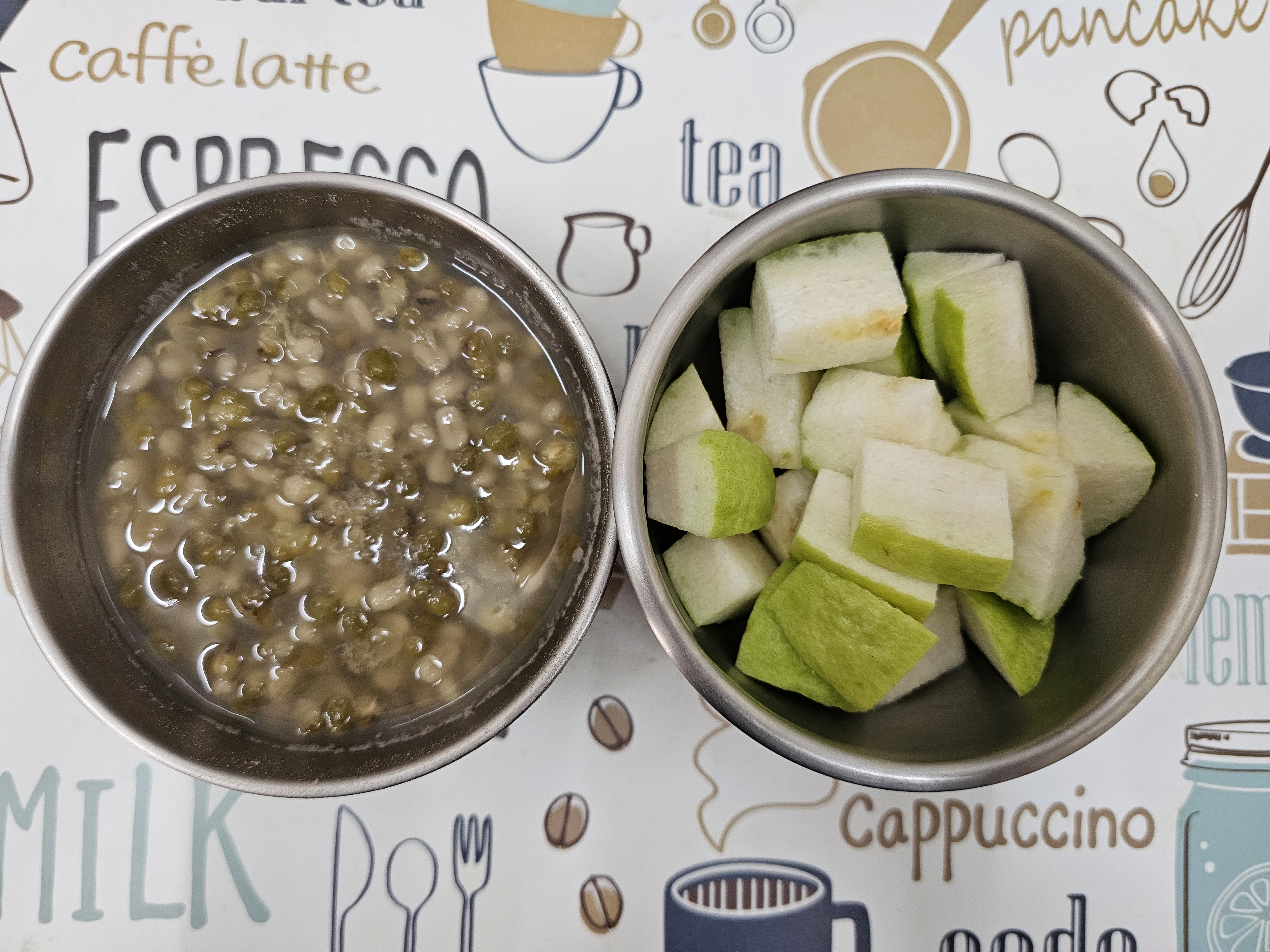 綠豆薏仁湯、水果